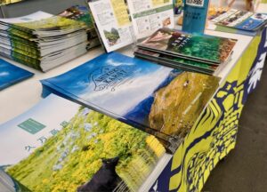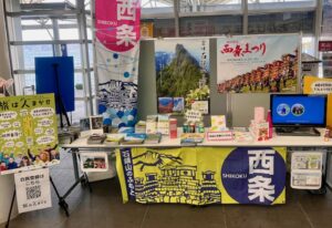 松山観光港ターミナル1階待合ロビーにおいて、西条市と久万高原町によるロビー展を開催しています。